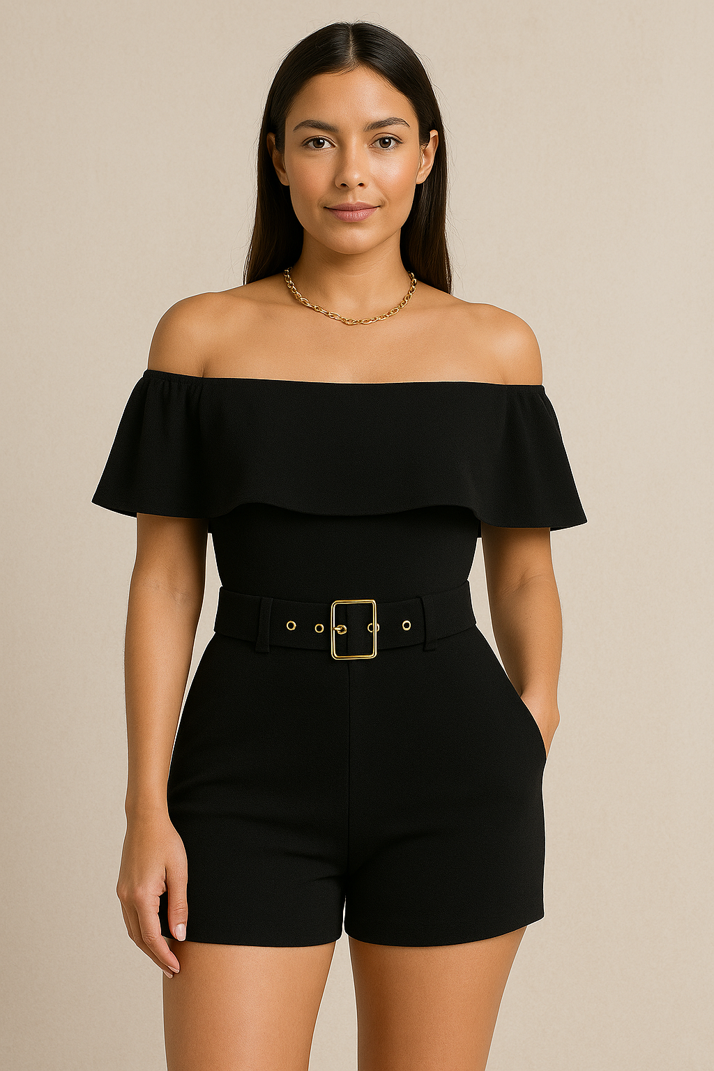 Macaquinho Ombro a Ombro em Crepe de Malha com Cinto